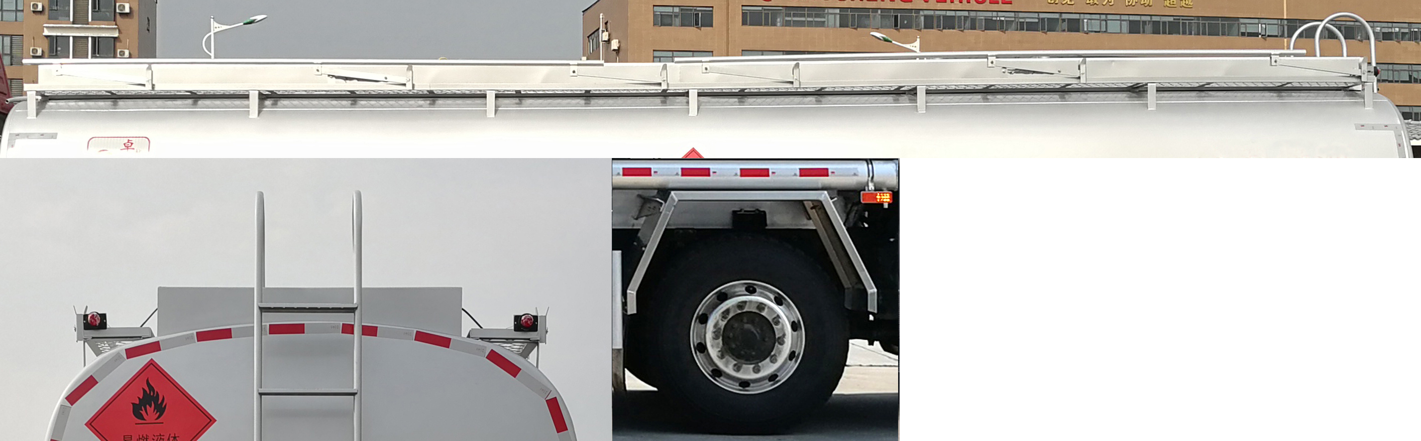 配置  1、該車適用于危險(xiǎn)品運(yùn)輸,運(yùn)送危險(xiǎn)貨物車輛類型為:FL型,類項(xiàng)號(hào):3。運(yùn)輸介質(zhì):汽油。罐體有效容積31.1立方米,罐體外形尺寸(長(zhǎng)×寬×高)(mm):9200×2450×1720。2、側(cè)防護(hù)材料為鋁合金,螺栓連接;后防護(hù)材料為Q235,截面尺寸80×140mm,下邊緣離地高410mm。3、僅選用排氣管前置、限速裝置(限速79km/h)、前輪盤(pán)式制動(dòng)及子午線輪胎的底盤(pán),轉(zhuǎn)向輪安裝輪胎爆胎應(yīng)急防護(hù)裝置,后軸采用空氣懸架。安裝帶有衛(wèi)星定位功能的行駛記錄儀。EBS型號(hào)/生產(chǎn)廠家:EBS3/威伯科汽車**系統(tǒng)(**)有限公司。發(fā)動(dòng)機(jī)/油耗值(L/100km)對(duì)應(yīng)關(guān)系為:CA6DK1-32E61/38.16,CA6DK1-28E61/38.16 。4、選裝ETC。罐體上部選裝上走道,**軸選裝方形擋泥板。