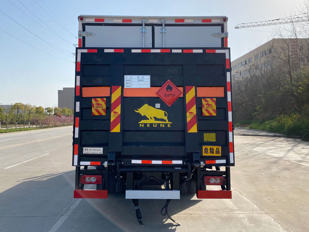 | 配置 | 1、該車適用于運輸危險品,運輸具有**容器(瓶)包裝的物品,運送危險物品類項號:2.1,2.2.廂體頂部封閉不可開啟.2、側后防護材料均為Q235,螺栓連接;后防護截面尺寸(mm)120×60,下邊緣離地高460mm.選裝后部無尾板,廂體側面選裝開門型式及位置,選裝后門雙拉桿,選裝不帶側開門,選裝瓦楞板結構,廂體側面板選裝開百葉窗.3、該車僅采用3800mm軸距改裝.隨底盤選裝排半駕駛室.僅選用排氣管前置、限速裝置(限速80km/h)、前輪盤式制動及子午線輪胎的底盤;轉向輪裝備輪胎爆胎應急防護裝置。安裝帶衛(wèi)星定位功能的行駛記錄儀。ABS系統(tǒng)**器型號/生產(chǎn)企業(yè):ABS-E/威伯科汽車**系統(tǒng)(**)有限公司。發(fā)動機/油耗值(L/100km)對應關系為:F3.8NS6B156/17.17。尾板收起狀態(tài)水平長度為300mm,尾板質(zhì)量為450kg。選裝直接供電式ETC車載裝置。F3.8NS6B156發(fā)動機**大凈功率為112Kw. | ||