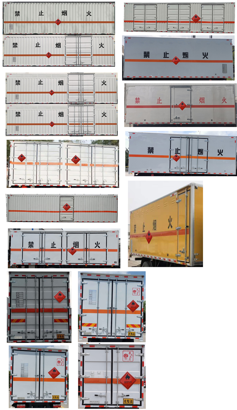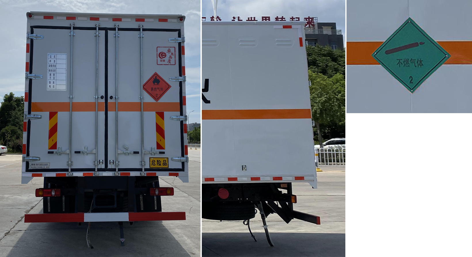 配置  ABS型號:3631010-C2000;ABS生產企業:東科克諾爾商用車制動系統(十堰)有限公司;安裝有限速裝置;限速裝置限速(km/h):80;安裝有具有衛星定位功能的行駛記錄儀;選裝描述:隨底盤選裝駕駛室前面罩,選裝側窗玻璃;駕駛室頂部中間三個裝飾燈為選裝件;前霧燈為選裝件;駕駛室前臉擾流罩為選裝件。選裝后部無尾板。運輸具有**包裝的不可燃氣體,安裝2.2類危險品標識。該車型可選裝ETC車載裝置.;發動機/油耗值(L/100km)對應關系為:B6.2NS6B210/26.5,DDi50E190-60/23.9;所用材料材質、連接方式以及后部防護裝置的主要尺寸參數(斷面尺寸和離地高度):側/后防護材料為Q235,側防護螺栓連接,后防護焊接,截面尺寸120×60mm,下邊緣離地高490mm;尾板、上下坡道(或類似裝置)收起狀態的水平長度(mm):液壓升降尾板收起狀態水平長度為290mm,尾板質量為550kg;車廂頂部封閉且不可開啟;運輸**容器(瓶)包裝的貨物;FL型車輛;危險貨物類項號:2.1,2.2;其他說明:該車為危險貨物運輸車.僅選用排氣管前置、前輪盤式制動及子午線輪胎的底盤,轉向輪安裝輪胎爆胎應急防護裝置,后軸采用空氣懸架;廂體側面選裝開門型式及位置,選裝不帶側開門,選裝瓦楞板結構;廂體側面板選裝開百葉窗。