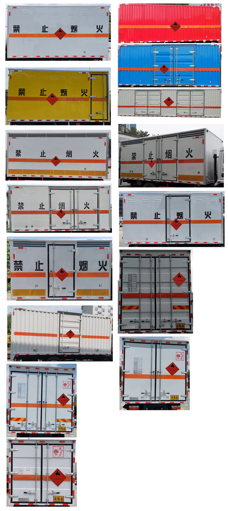 配置  1、該車適用于運輸危險品,運輸具有**容器包裝的物品,運送危險品類項號:3,廂體頂部封閉,不可開啟。2、側,后防護材料均為Q235,螺栓連接;后防護截面尺寸100×50mm,下邊緣離地高490mm。3、隨底盤選裝駕駛室前圍及前部燈具.選裝排半駕駛室型式,選裝導流罩。該車型可選裝ETC車載裝置.廂體側面選裝開門型式及位置,選裝不帶側開門,選裝瓦楞板結構;廂體側面板選裝開百葉窗。僅選用排氣管前置、限速裝置(限速80km/h)、前輪盤式制動及子午線輪胎的底盤;轉向輪裝備輪胎爆胎應急防護裝置。安裝帶衛星定位功能的行駛記錄儀。ABS系統型號/生產企業:ABS-VI.E/廣州瑞立科密汽車電子股份有限公司,ABS-E/威伯科汽車**系統(**)有限公司。發動機/油耗值(L/100km)對應關系為:F2.8NS6B131/10.85,Q28-130E60/11.02,F2.8NS6B150/10.85,D30TCIF1/11.2,F3.8NS6B156/11.27,CY4SK261/11.18,4J28TC6/11.46,F2.8NS6B156/11.07,Q28-130C60/11.38,Q23-115C60/11.38。