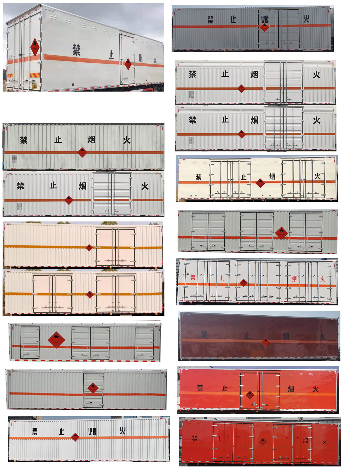 配置  1、該車適用于危險品運輸,類項號:3。2、側、后防護材料均為Q235,側防護螺栓連接;后防護焊接,截面尺寸(寬×高)(mm)60×120,下邊緣離地高480mm。3、僅采用軸距(mm): 1800+4575+1400。EBS系統生產廠家及型號為:威伯科汽車**系統(**)有限公司(EBS3),廣州瑞立科密汽車電子股份有限公司(CM-EBS)。僅選用排氣管前置、限速裝置(限速79km/h)、前輪盤式制動及子午線輪胎的底盤;安裝帶有衛星定位功能的行駛記錄儀;發動機型號及油耗值(L/100km)為:WP7.270E61/37.47,WP7.300E61/37.47,WP8.320E61/38.07,WP8.350E61/38.07。后軸采用空氣懸架。轉向輪安裝輪胎爆胎應急防護裝置。尾板收起狀態水平長度為290mm,尾板質量為550kg。該車型可選裝ETC車載裝置.選裝后部無尾板;選裝側門型式及位置,選裝側門數量,選裝不開側門,廂體側面板選裝開百葉窗,選裝瓦楞板結構。廂體頂部封閉不可開啟。運輸具有**容器(瓶)包裝的物品。