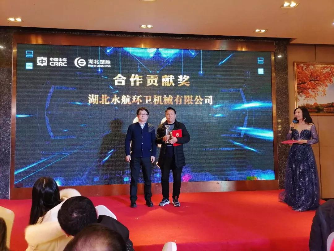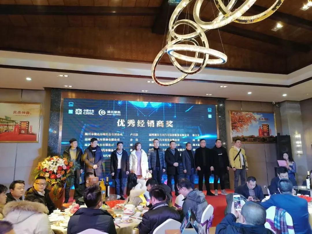 湖北楚勝公司總經理**小康**先上臺致辭。**總表示,2019年是充滿挑戰和機遇的一年,在剛剛過去的一年里,湖北楚勝收獲了累累碩果,成績斐然,2020年,湖北楚勝將繼續砥礪前行,整合所有資源,抓住發展機遇,共創更美好的未來。本次盛會設立了合作貢獻獎一名、**經銷商獎十名,銳意進取獎五名,中車**董事長顧一峰、湖北楚勝公司董事長張特夫、楚勝公司總經理**小康分別為獲獎者一一頒獎。