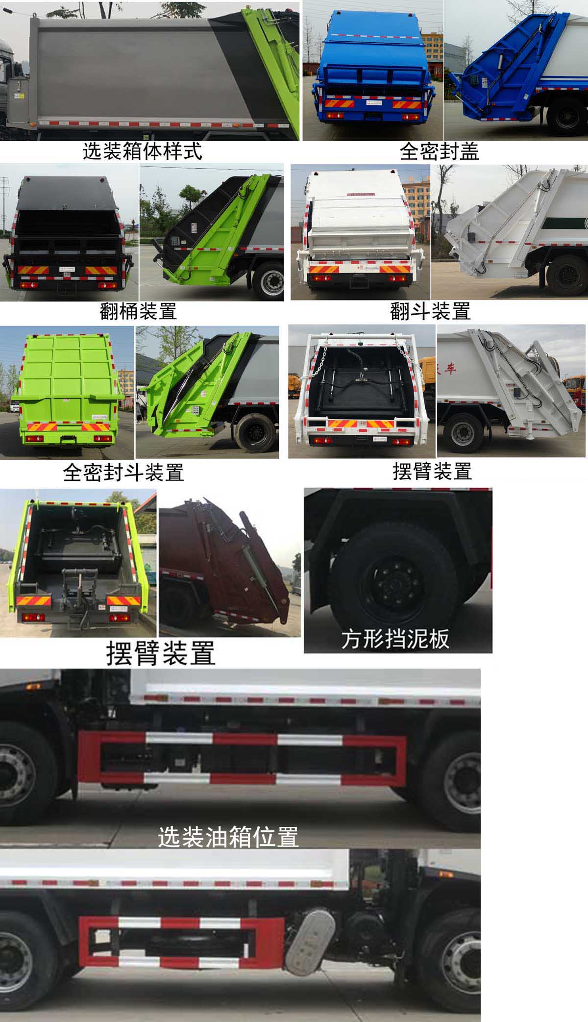 | 配置 | 1、該車主要專用裝置由箱體、壓縮系統(tǒng)組成,用于垃圾的收集與清運(yùn)。該車可選裝方形或弧形箱體,選裝全密封蓋裝置,選裝方形擋泥板,選裝后部工作裝置,選裝側(cè)防護(hù)樣式。選裝工作裝置時(shí)外形長(zhǎng)/前懸/軸距/后伸對(duì)應(yīng)關(guān)系為(mm):①無(wú)上料裝置:8670/1400/4500/-;8700/1430/4500/-;8870/1400/4700/-;8900/1430/4700/-;②全密封斗裝置和擺臂裝置:8870/1400/4500/200;8900/1430/4500/200;9070/1400/4700/200;9100/1430/4700/200;③翻桶裝置和翻斗裝置:9070/1400/4500/400;9100/1430/4500/400;9270/1400/4700/400;9300/1430/4700/400。僅采用4500mm,4700mm軸距。2、側(cè)防護(hù)采用冷彎型鋼/Q235,螺栓連接;后防護(hù)由專用裝置替代,下邊緣離地高:500mm。3、隨底盤(pán)選裝高度不同的駕駛室;選裝前霧燈;選裝駕駛室頂部裝飾燈;選裝駕駛室前面罩;選裝前保險(xiǎn)杠及前部燈具,駕駛室前臉擾流罩為選裝件;駕駛室臥鋪側(cè)窗選裝裝飾板;選裝油箱安裝位置,選裝踏步結(jié)構(gòu)。安裝帶有衛(wèi)星定位功能的行駛記錄儀。ABS型號(hào)/生產(chǎn)廠家:3631010-C2000/東科克諾爾商用車制動(dòng)系統(tǒng)(十堰)有限公司,ABS 8/東科克諾爾商用車制動(dòng)系統(tǒng)(十堰)有限公司, 4460046450/威伯科汽車**系統(tǒng)(**)有限公司。采用的發(fā)動(dòng)機(jī)與油耗值對(duì)應(yīng)關(guān)系為(L/100Km):DDi50E190-60/23.9,D4.5NS6B190/24.4,D6.7NS6B230/23.7,B6.2NS6B210/23.8,B6.2NS6B230/23.8。 | ||