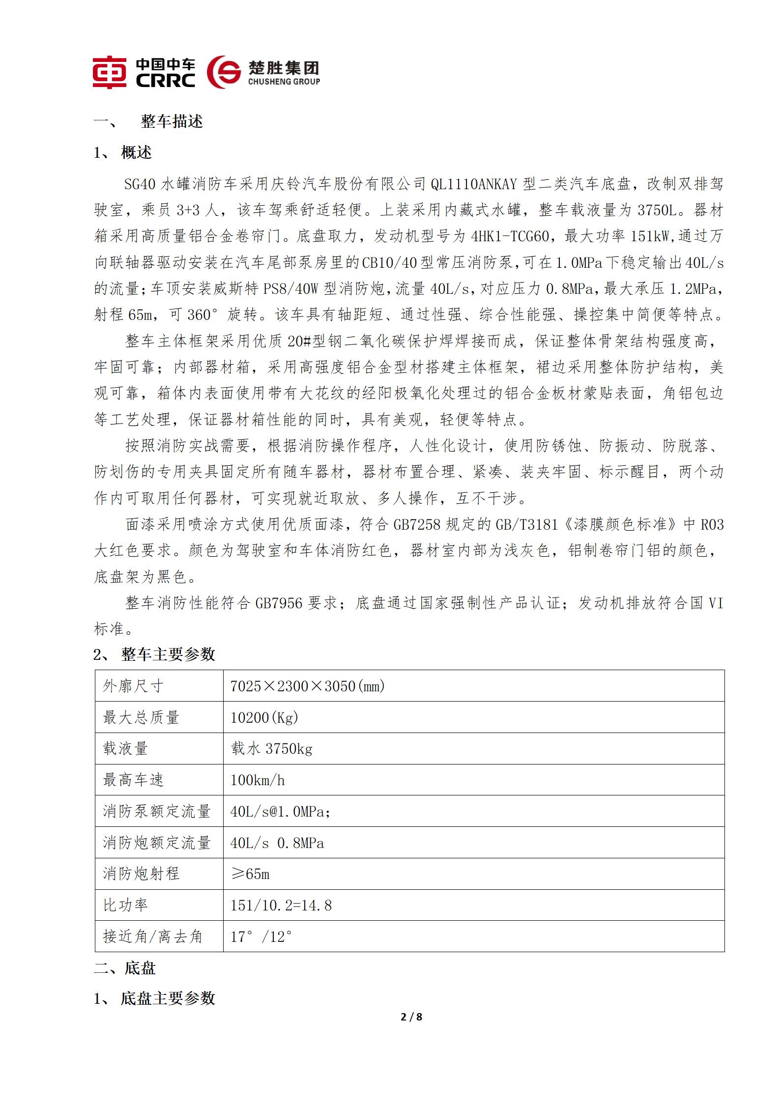 楚勝牌 CSC5100GXFSG40/06 型五十鈴水罐消防車